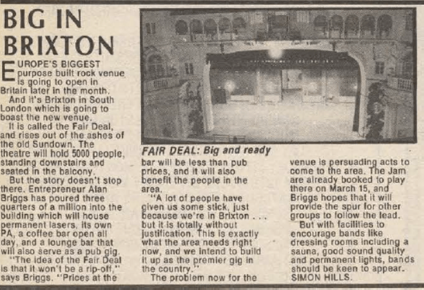 The music press was always susceptible to printing unsubstantiated rumours, so some of their news stories have to be taken with a pinch of salt. In November 1982 Melody Maker was reporting a potential rescue deal, spearheaded by Virgin Records and The Fair Deal’s leaseholders Watneys.