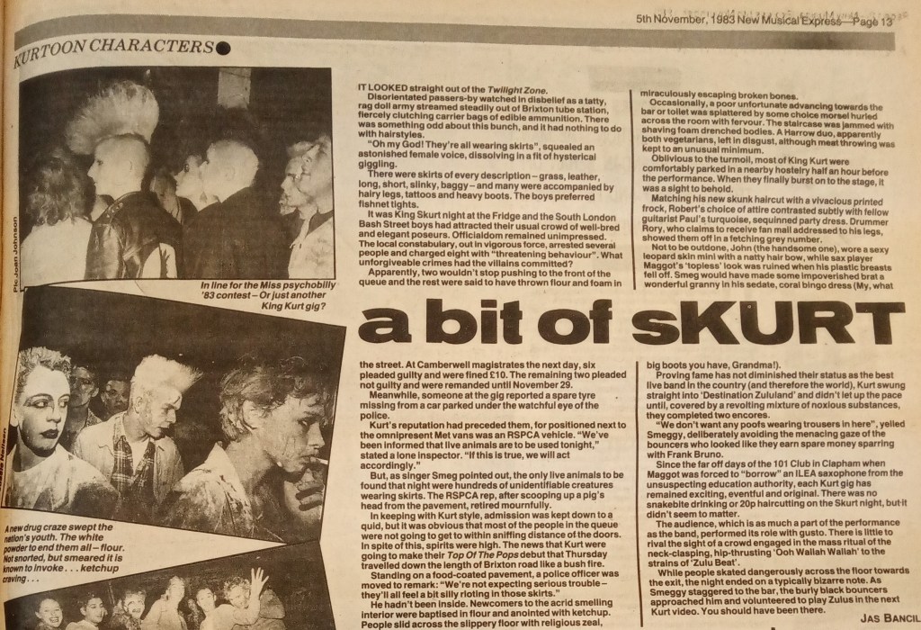 Psychobilly reprobates King Kurt chose the Fridge in Brixton for the launch of their “skirts only” tour in 1983, where the door policy dictated that men would only be allowed in if they were wearing a skirt.