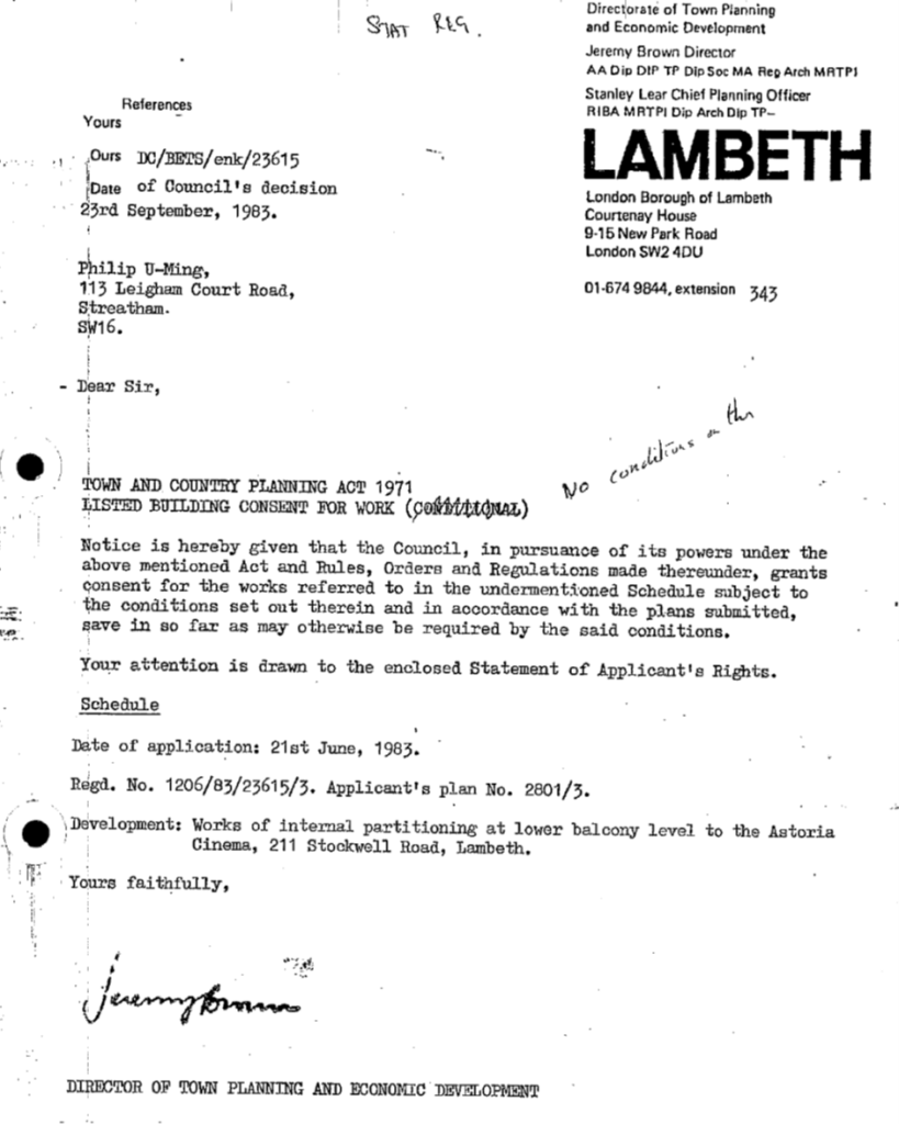 Philip U-Ming wouldn’t be submitting planning applications just three months ahead of the intended opening date (The Academy actually put on it’s first concert at the beginning of October) if he wasn’t fully involved in the running of The Academy. Yet there is no mention of him in Simon Parkes book “Live at the Brixton Academy”. Similarly, there is no mention of Simon Parkes in contemporary reports in the music press. Simon Parkes also mentions in his book that when he was negotiating with Watneys to buy The Academy “They also let slip that aside from the crooks behind Fair Deal, I was the first person in two years to express any interest in the place”. That statement is at odds with what we know was going on-you only had to read the music press at the time to know that.