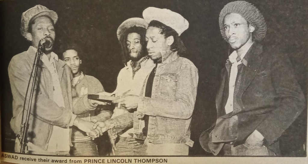 The presentations didn’t go without a hitch, with DJ Tony Williams presenting the wrong award and presenter Mikey Dread “looking as though he wished he were somewhere else”. He can’t have been as underwhelmed as Aswad were for winning the best band award: