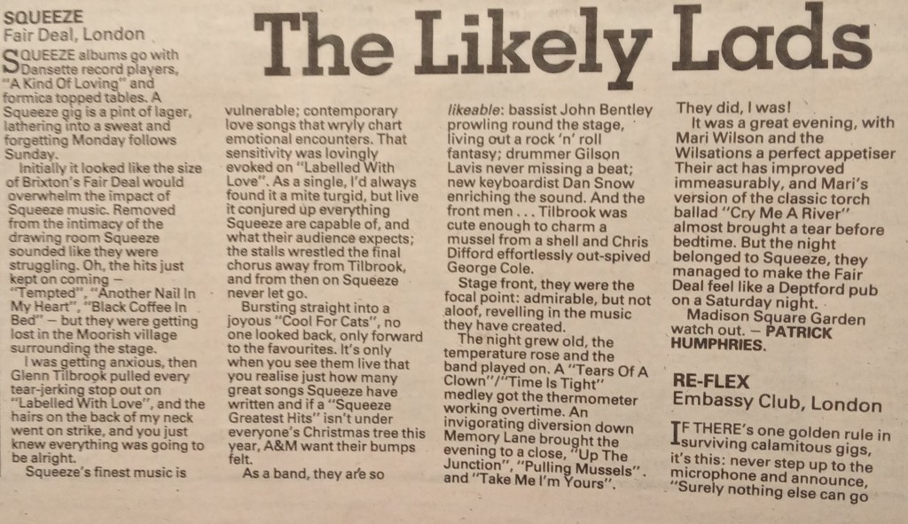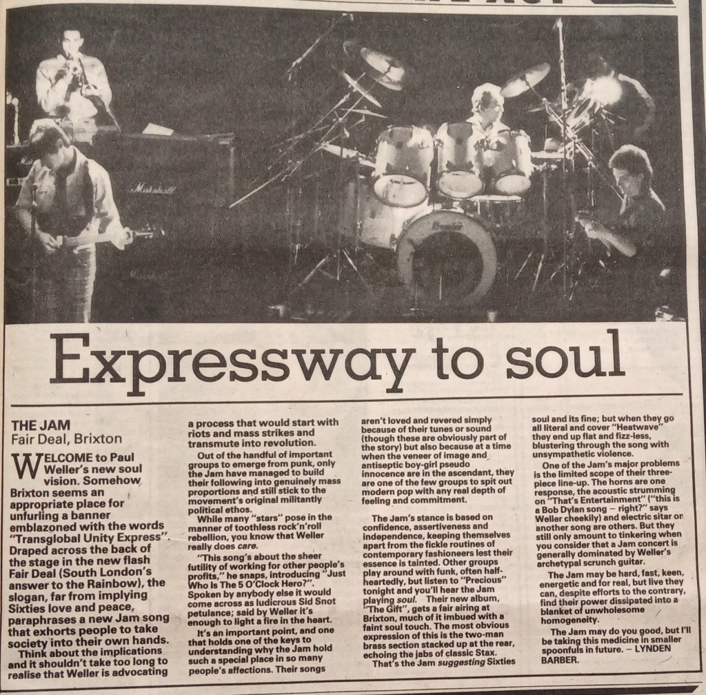 The NME’s Barney Hoskyns savaged The Jam’s performance. If you want an example of how pretentious 70s and 80s music journalism was, try this from his review: “His every movement is a genuflection of rhetorical presence”.